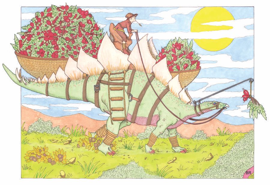 This is a true symbiotic relationship. This Stegosaurus gets to munch all day and do what a normal gigantic lizard does while the farmer gets to bring his harvest into the local market. This dinosaur has been a member of this farm for more than 5 generations. How I miss the good ol’ days when men were men and dinosaurs were farming equipment.