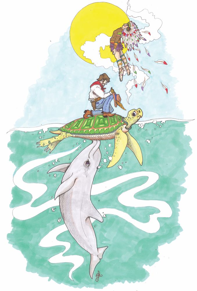 indian cowbpy turtle dolphinsm